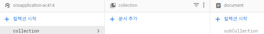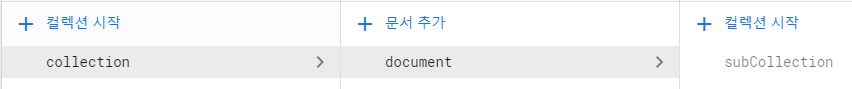 또한 문서 하위에 바로 문서를 만들 수 없고 컬렉션이 중간에 존재해야 한다.