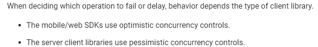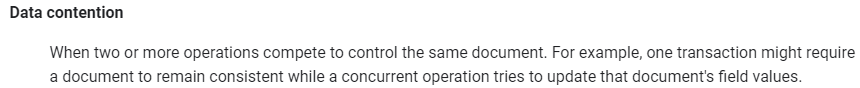 Firestore는 이러한 operation들중 하나를 지연하거나, 실패함으로서 data contention 문제를 해결한다.