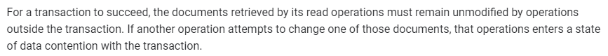 예를 들면 트랜잭션이 특정 문서를 읽는 동안 다른 클라이언트에서 문서를 수정하면, 트랜잭션 전체를 재시도한다.