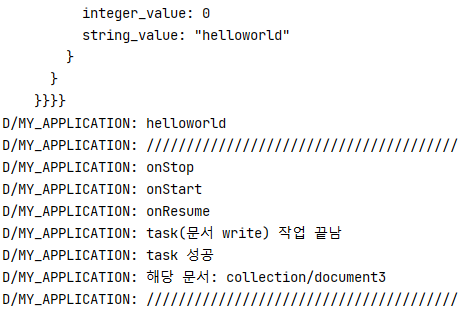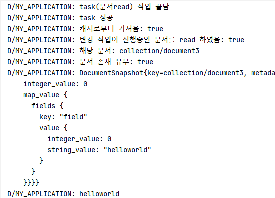 (문서가 없으면 없는 정보 저장, 있으면 문서 저장) -> 컬렉션1/문서1 get(Source.CACHE) -> 네트워크 상태 상관없이 task 성공 (이전에 캐싱되어있던 정보출력)