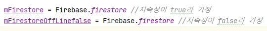 만약 오프라인 지속성이 다르게 설정된 파이어스토어 변수를 두개 참조하더라도 둘중 하나인 mFirestore로 데이터베이스 작업을 한번이라도 시작하면 mFirestore, mFirestoreOffLineFalse 모두 지속성 변경을 하면 앱이 크래쉬된다.
