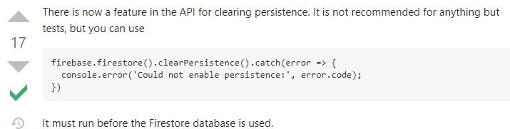 https://stackoverflow.com/questions/48929728/how-to-clear-firestore-persistence-data