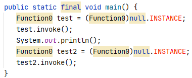 (위의 함수는 파라메터가 없으므로 Function0이고, 리턴타입이 Unit이므로 Function0<Unit> 인터페이스 구현 객체로 함수가 담긴다)