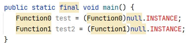 inline fun firstOrder(): Unit { println("일차함수 호출") } inline fun highOrder(para: () -> Unit): Unit { println("고차함수 호출") para() } fun main() { val test: () -> Unit = ::firstOrder val test2: (() -> Unit) -> Unit = ::highOrder }