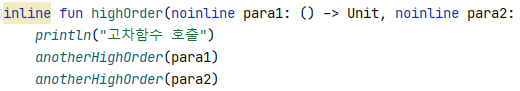 inline인 para2는Function구현 객체 자체를 생성하지 않아 anotherHighOrder 고차함수의 인자에 객체를 전달할 수 없다.
