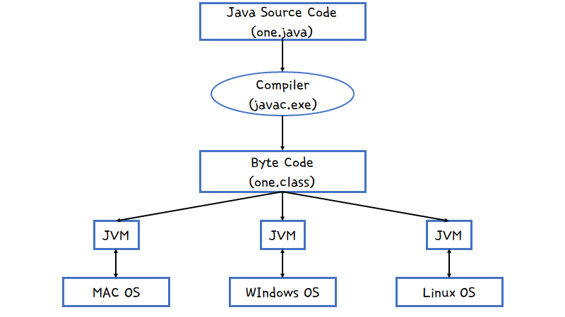 Java 프로그램이 여러 운영체제에서 돌아갈 수 있는 이유 -> Java 프로그램을 돌리는 JVM이 운영체제에 맞게 설계됨