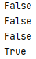 print(None == None) print(None == True) # print(None == 1) print(None == False) # print(None == 0) print(None == -100)