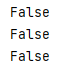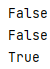 if 0: print(True) else: print(False) if 0.0: print(True) else: print(False) if 0j: print(True) else: print(False)