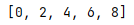 0~9 값중 짝수만 리스트에 추가하여 리스트 생성