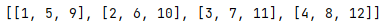 matrix = [[1, 2, 3, 4], [5, 6, 7, 8], [9, 10, 11, 12]] print([[row[i] for row in matrix] for i in range(4)])