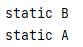 class A { public static void staticMethod() { System.out.println("static A"); } } class B extends A { } public class Test { public static void main(String[] args) { B.staticMethod(); } }