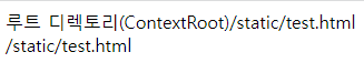 <!DOCTYPE html> <html> <head> <meta charset="EUC-KR"> <title>Insert title here</title> </head> <body> 루트/static/test.html<br> </body> </html>localhost:8080/SpringProject/static/test.html