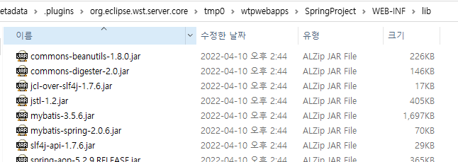 루트/WEB-INF/lib에는 depency에 포함된 라이브러리들이 포함된다.