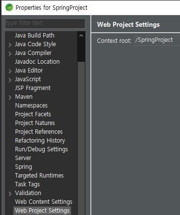 ContextPath는 "SpringProject" -> localhost:8080/SpringProject 의 지점이 ContextRoot가 된다.
