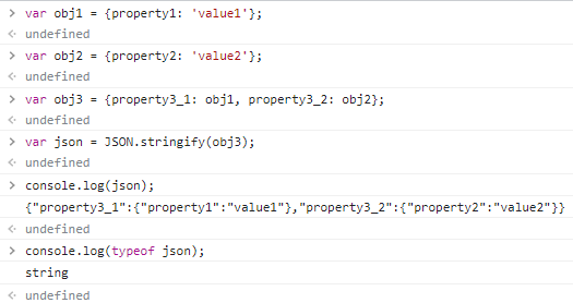 2번의 경우 만약 JSON이라는 기준이 없었다면 네트워크 통신시 obj3객체를 담아 보낸다면 받는 쪽에서는 obj3의 property3_1, property3_2에 해당하는 프로퍼티에 해당하는 값이 무엇인지 알길이 없다.
