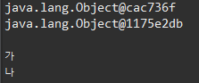 import java.util.ArrayList; public class UnboundWildcardConsumeItem { public static void main(String[] args) { ArrayList<Object> objects = new ArrayList<>(); objects.add(new Object()); objects.add(new Object()); consumeItem(objects); ArrayList<String> strings = new ArrayList<>(); strings.add("가"); strings.add("나"); consumeItem(strings); } public static void consumeItem(ArrayList<?> unboundArrayList) { for (Object obj : unboundArrayList) { System.out.println(obj); } System.out.println(); } }