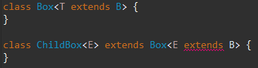 class Box<T>{} class ChildBox<T> extends Box<T>{}