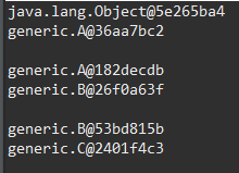 import java.util.ArrayList; public class LowerBoundWildcardConsume { public static void main(String[] args) { ArrayList<Object> objList = new ArrayList<>(); objList.add(new Object()); objList.add(new A()); consumeItem(objList); ArrayList<A> aList = new ArrayList<>(); aList.add(new A()); aList.add(new B()); consumeItem(aList); ArrayList<B> bList = new ArrayList<>(); bList.add(new B()); bList.add(new C()); consumeItem(bList); } public static void consumeItem(ArrayList<? super B> lowerBoundArrayList) { for (Object item : lowerBoundArrayList) { System.out.println(item); } System.out.println(); } }