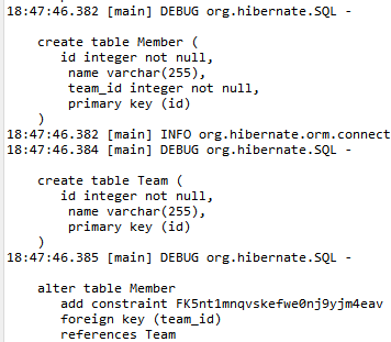 @Getter @Setter @Builder @AllArgsConstructor @NoArgsConstructor @Entity class Member { @Id private Integer id; private String name; @ManyToOne @JoinColumn(name = "team_id") private Team team; }