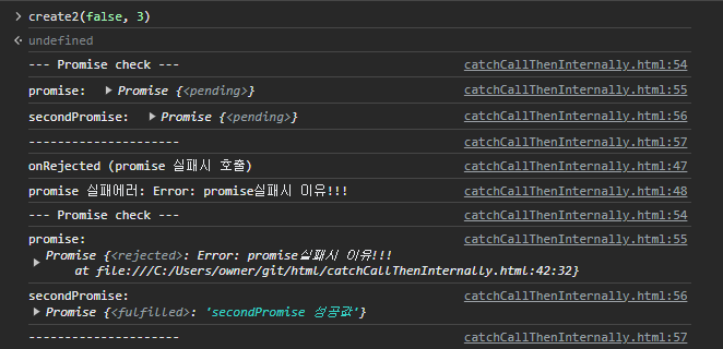 create2는 catch(onRejected)를 통해 실패를 핸들링한 경우