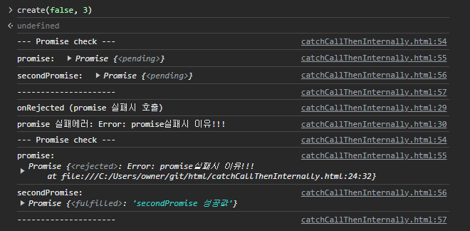 then(undefined, onRejected)와 결과가 동일한 것을 확인 가능
