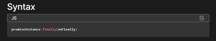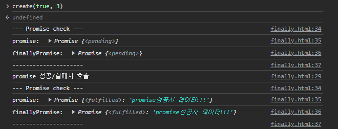 finallyPromise는 promise의 fulfilled 값을 가진 fulfilled 프로미스가 된다.