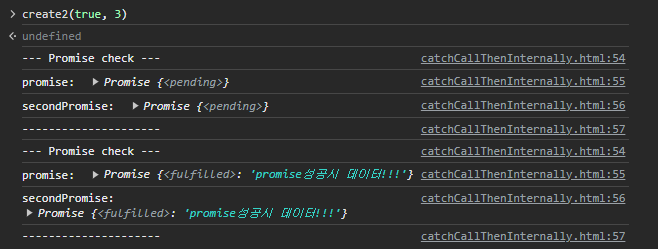 코드를 수정하여 then의 onFulfilled 콜백에 Promise가 아닌값을 리턴하게 변경한 후 동일하게 create(true, 3)하면