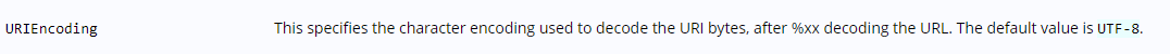 인코딩된 uri 바이트 데이터를 디코드할때 사용될 인코딩값을 지정하는 속성 https://tomcat.apache.org/tomcat-10.1-doc/config/http.html
