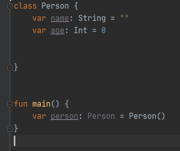 class Person() { var name: String ="" //인위적으로 한번 초기화 해줘야함 var age: Int=0 init { } } fun main() { var person: Person = Person() }해결2
