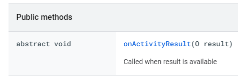 onActivityResult 하나의 메서드가 있고, 결과를 받을 때 호출될 콜백 메서드이다.