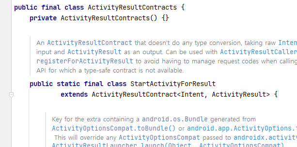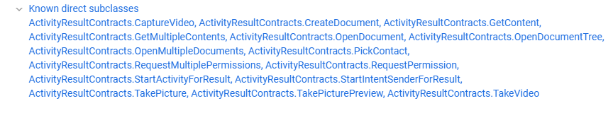 ActivitiyResultContracts의 static inner클래스들로 각 인텐트 유형 클래스가 정의되어있다.