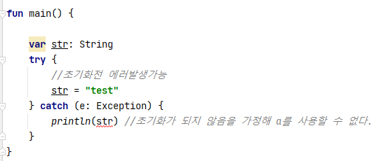 그렇기 때문에 try블록에서 초기화를 한다해도 catch나, finally에서 변수를 사용할 수 없다.