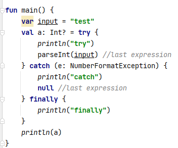 --코틀린의 try는 표현식이다( 값을 return한다 )