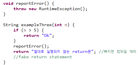 exampleThree의 리턴타입 String지정은 문제가 없다.