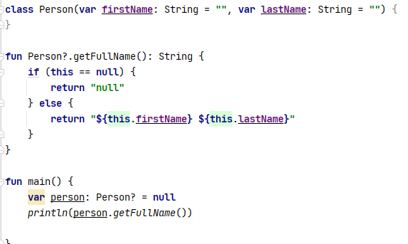 위의 getFullName 확장함수는 non-null변수일때만 사용가능하다.