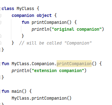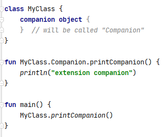 클래스에 companion object 가 존재하면 companion object의 extension function, extension property를 사용할 수 있다.