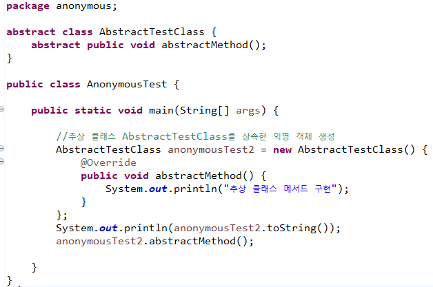 2. 추상 클래스를 상속하여 추상 메서드를 구현한 익명 객체