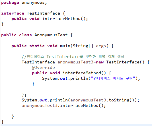 인터페이스를 구현한 익명 객체 생성시 클래스처럼 new TestInterface(){ .....}
