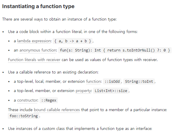 https://kotlinlang.org/docs/lambdas.html#instantiating-a-function-type