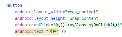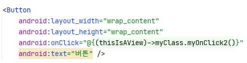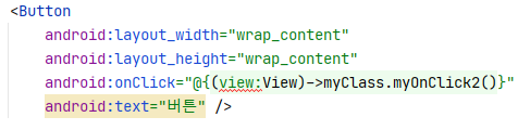 android: onClick속성에 myClass의 myOnClick메서드 참조를 ::를 통해 넣어줬다.