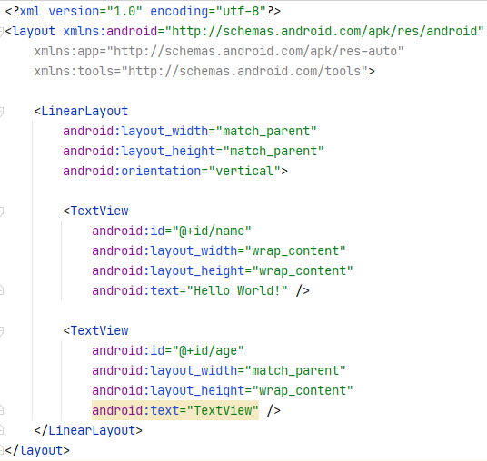 - layout파일을 <layout></layout> 태그로 감싼 후 namespace를 layout태그로 이동시킨다.
