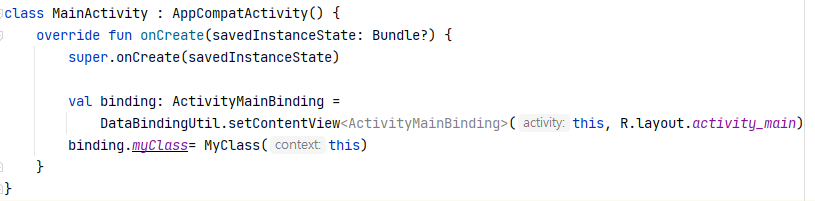 메인액티비티에서 바인딩 클래스의 myClass 변수에