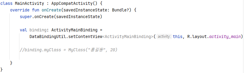 데이터 바인딩 클래스를 사용하기 위해서는 액티비티의 setContentView를 변경해줘야한다.