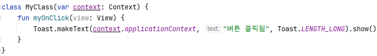 메서드 참조를 넣을 때는 시그니쳐를 꼭 맞춰야하기 때문에 myOnClick메서드의 파라메터에 view:View를 꼭 선언해야한다.