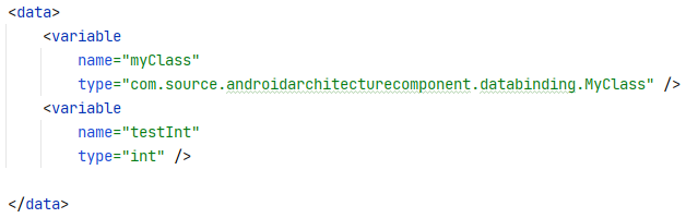 <data>태그는 생성되는 바인딩 클래스의 멤버로 포함될 변수를 선언하기 위한 부모 태그이다.