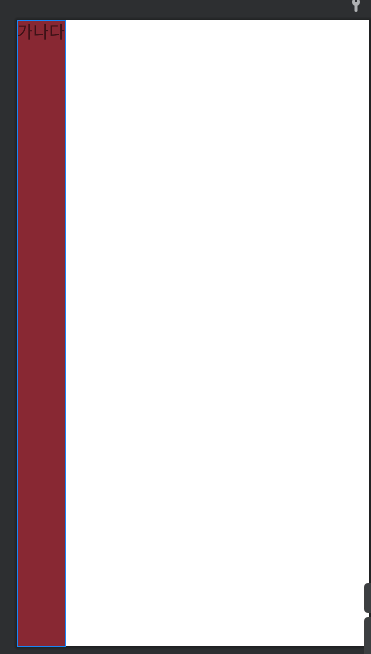 아쉽게도 root인 ViewGroup과 TextView모두 화면에 꽉찬 높이를 가지지만 가로는 모두 0으로 측정되어 아무것도 보이지 않는다. android:text 속성이 적용되지 않은 상태이기 때문에 내용물에 해당하는 content의 가로가 0인 것이다.
