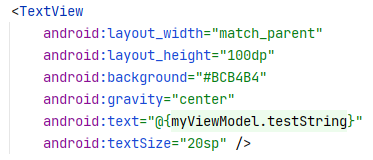 layout expression으로 viewModel의 testString값을 텍스트 속성으로 설정