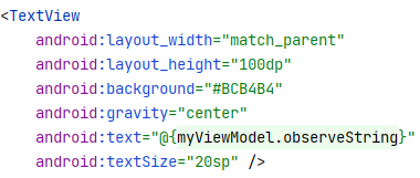 class MyViewModel : ViewModel() { var observeString: ObservableField<String> = ObservableField<String>("") }