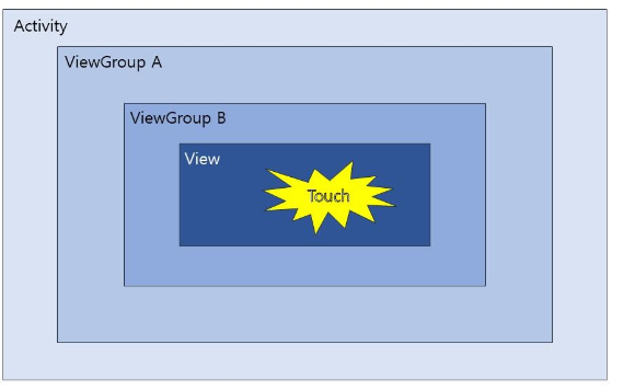 터치 이벤트 핸들인 onTouchEvent은 dispatch와 반대로 하위계층부터 처리된다.