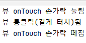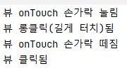 로그 출력이 복잡해지니 리니어 레이아웃의 터치 리스너를 다시 지우고 계속 보자.